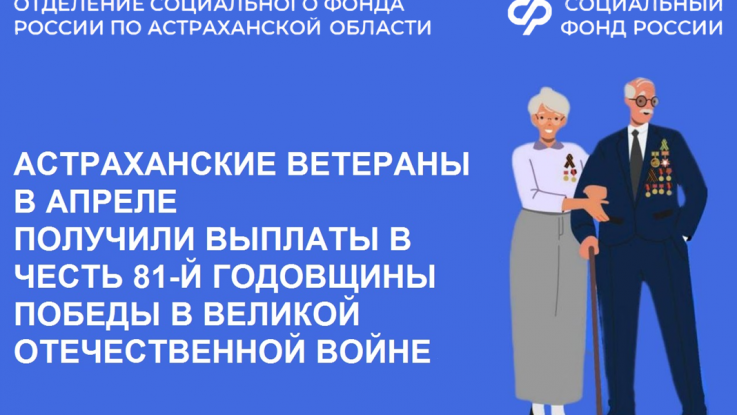 Астраханские ветераны получили ежегодную выплату в честь 81-ой годовщины Победы в Великой Отечественной войне. Средства направило региональное Отделение Социального фонда России.